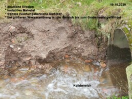 Seit Oktober 2020 hat der Orsbeirat in mehreren Gesprächen und Schreiben die Gemeindeverwaltung immer wieder darauf hingewiesen, dass an einem kleinen Bachabschnitt im Bereich „Neubau“ Erosionsschäden drohen (siehe Foto).