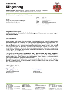 • 📌 Thema: Entwicklung der Kinderzahlen in unseren Kitas & notwendiger Handlungsbedarf –> drohende Schließung Kindergarten Ruppendorf + fehlendes Konzept der Gemeinde.