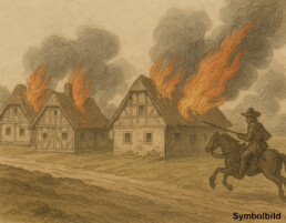 🗓️ Vor genau 386 Jahren, am Mittwoch nach Ostern (27. April 1639), erlebte Ruppendorf eine seiner dunkelsten Stunden: Die Reiter der schwedischen Armee unter General Johan Baner zogen von Freiberg kommend durch unsere Region und setzten u.a. Ruppendorf in Flammen. 🐎🔥