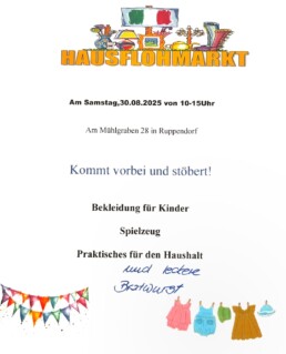 👉 Auf zum Hausflohmarkt – Samstag, 30.08.2025, 10–15 Uhr, Am Mühlgraben 28.
