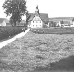 das Lesen und Schreiben zu erlernen. Daher wurde sehr bald Lesen, Schreiben und etwas Rechnen gelehrt. Weitere Fächer kamen erst später hinzu. Georg Zimmermann, geboren 1556 in Ruppendorf, war ab 1576 der erste bekannte Schulmeister in unserem Dorf. 1614 starb er „nachdem er 36 Jahre und 8 Wochen die Ehr besessen und den Dienst allhier versorget“.